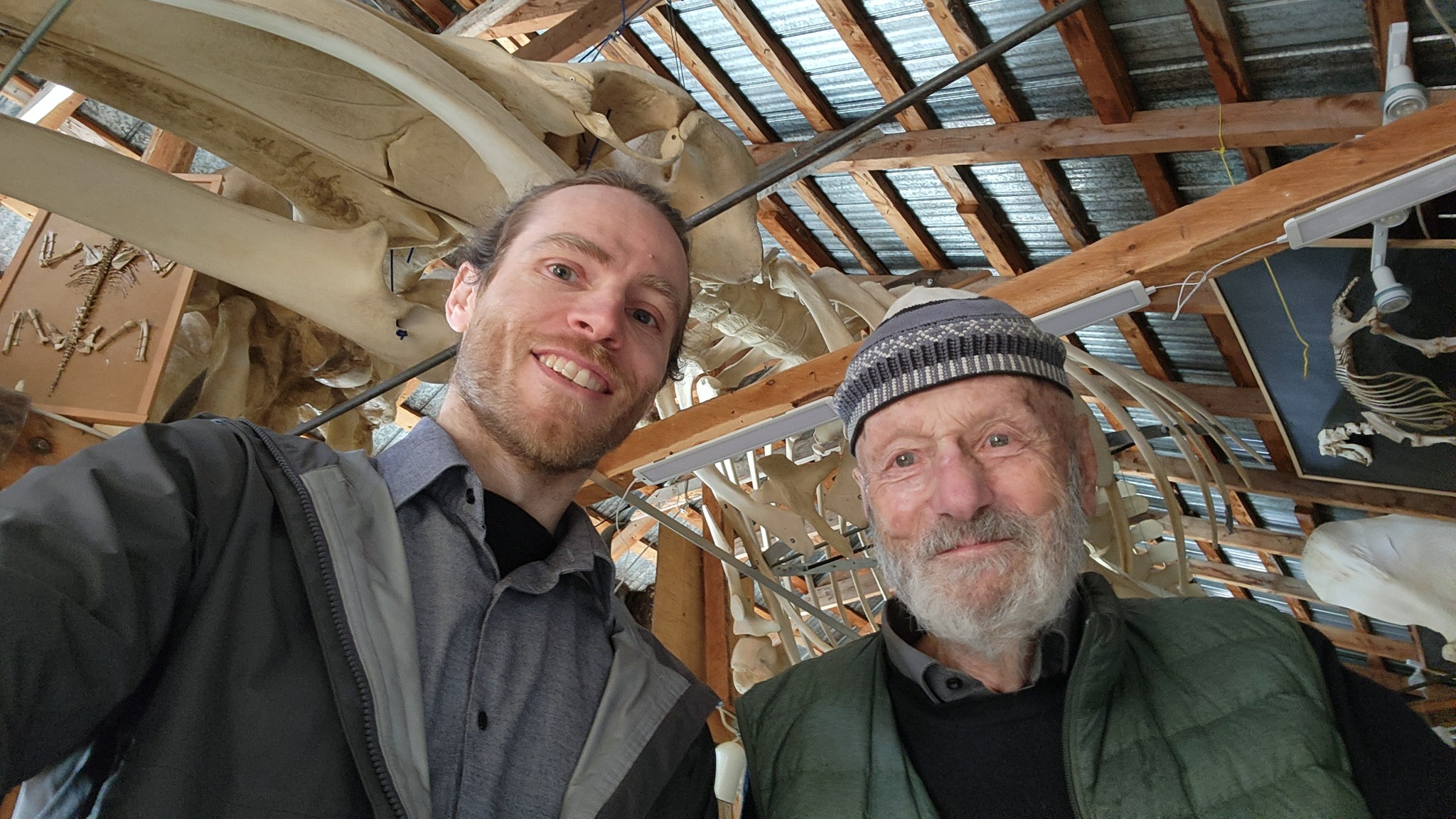 notre nouvelle acquisition, le squelette d'un petit rorqual, en présence de