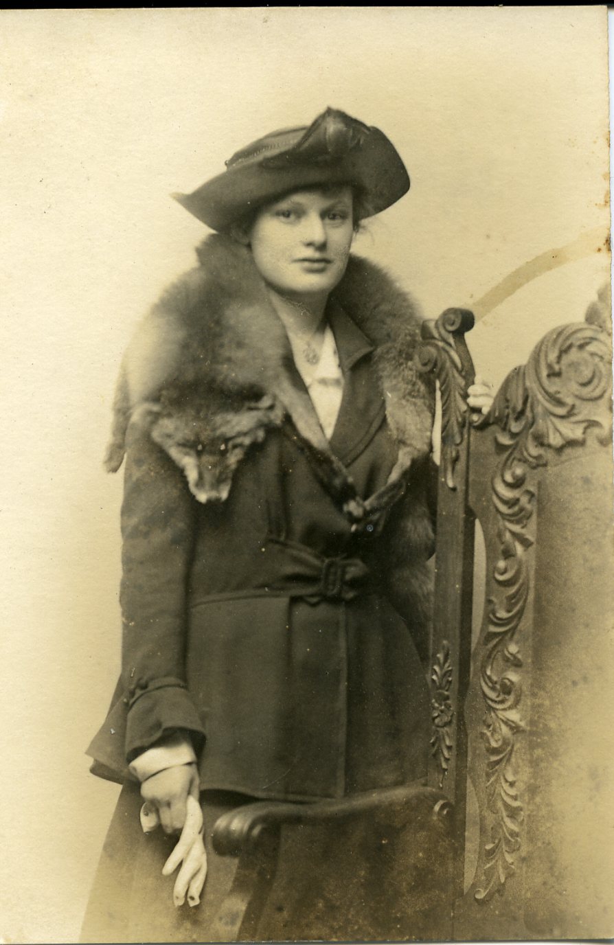 1922. Habillée avec élégance pour une sortie par temps frais, la dame porte un