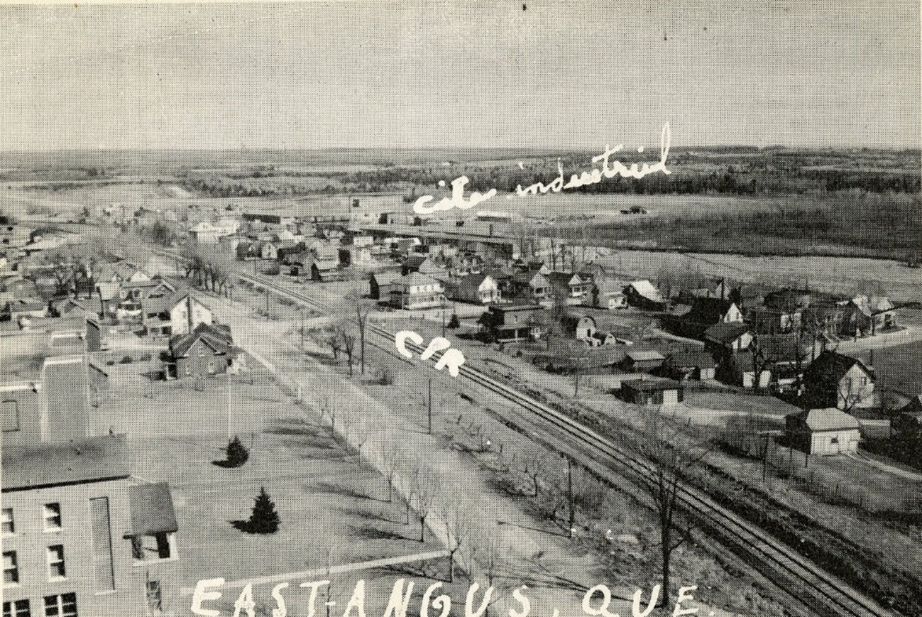 Vue aérienne d'East Angus : l'usine de la Brompton Pulp and