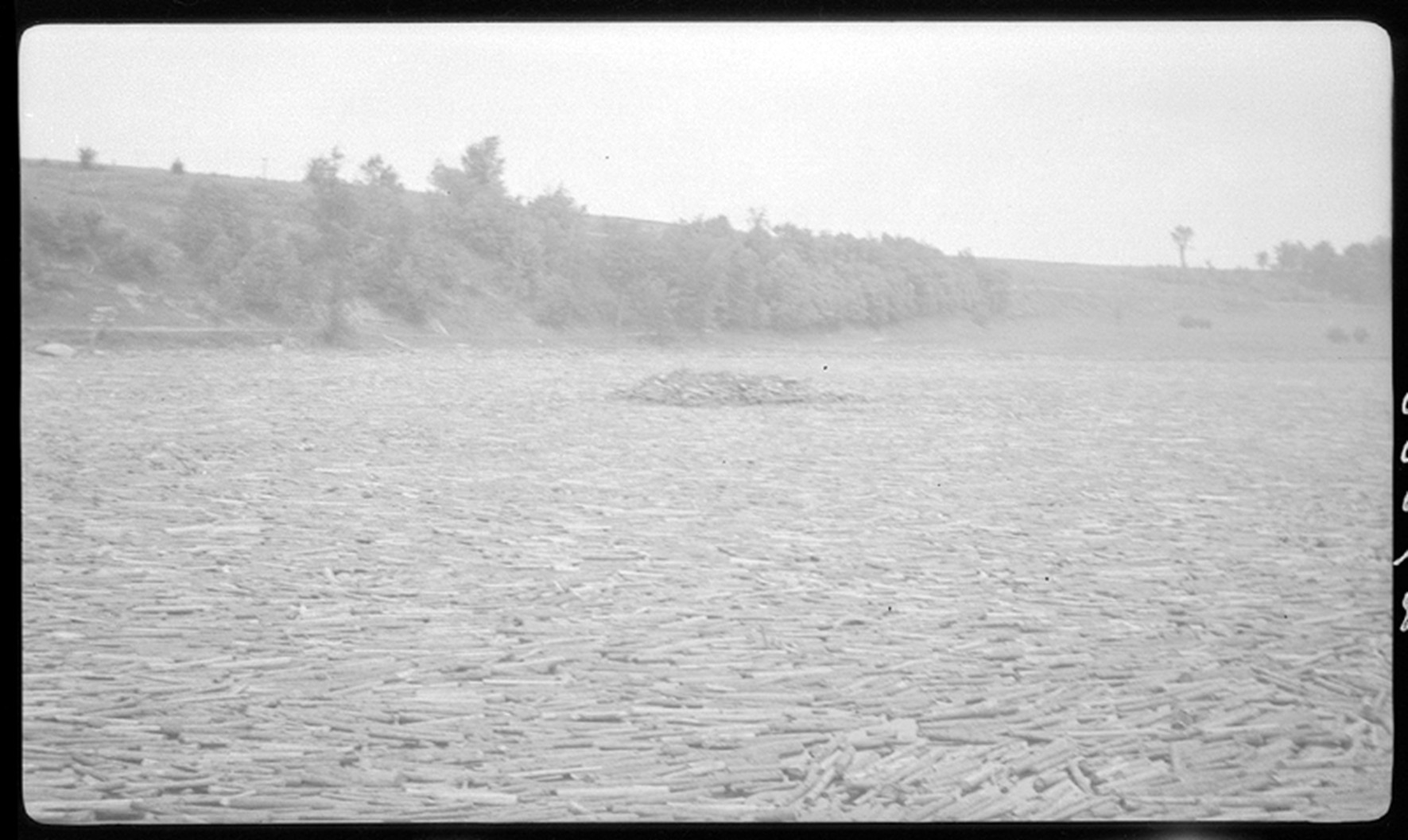 flottaison du bois sur la rivière Saint-François et entreposage des billots de