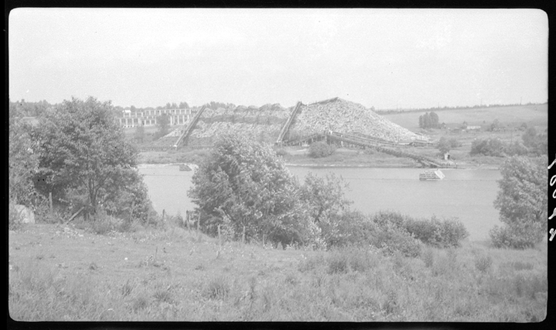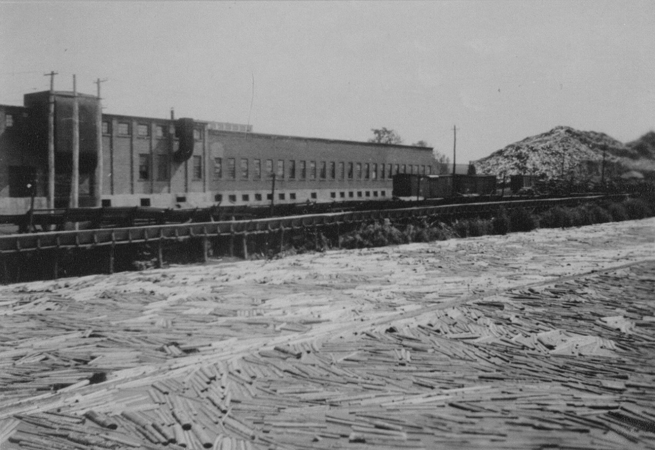 bois dans la cour de l'usine à East Angus, reproduction, 1945. Archives