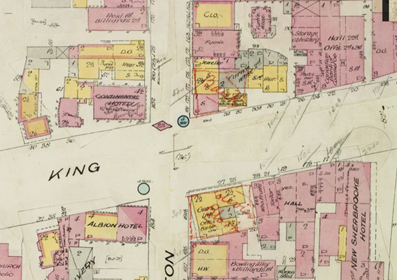 Sherbrooke, extrait de la planche 16 permettant de situer l'Hôtel Continental à