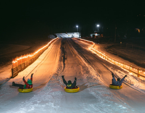 soirée sur les pentes de la glissade sur tube illuminée ! Vous pourrez déguster