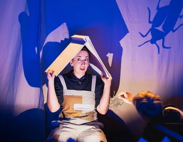 Trois interprètes marionnettistes sortent de leur cachette