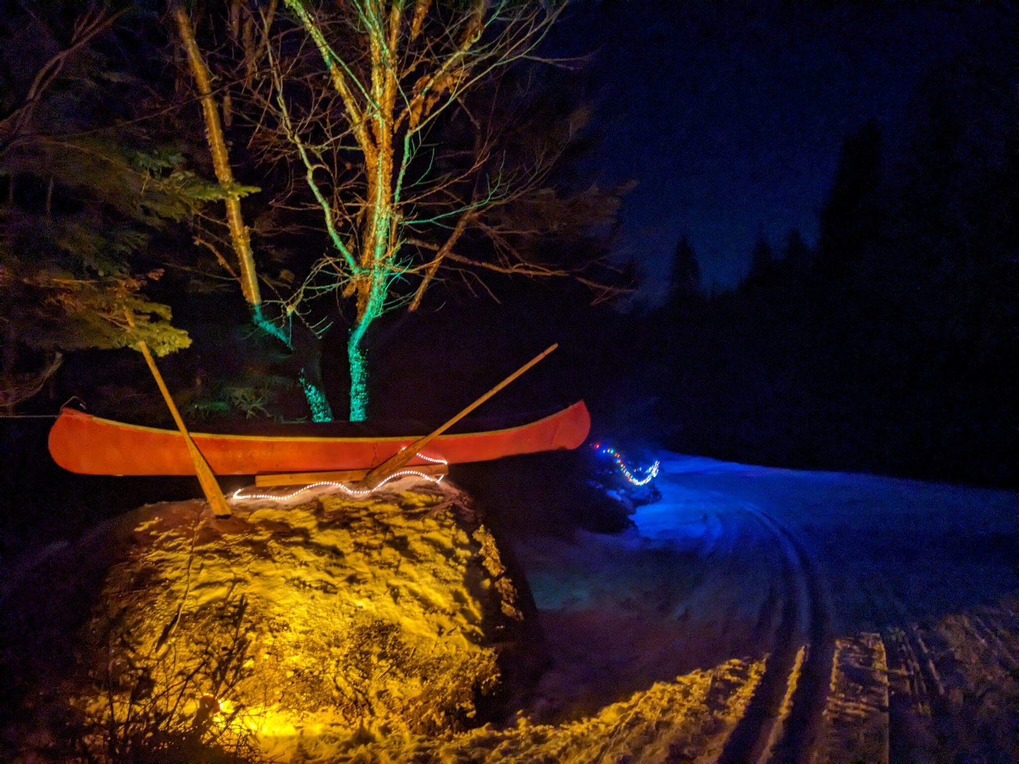 Une fois la noirceur tombée, un sentier illuminé au cœur de